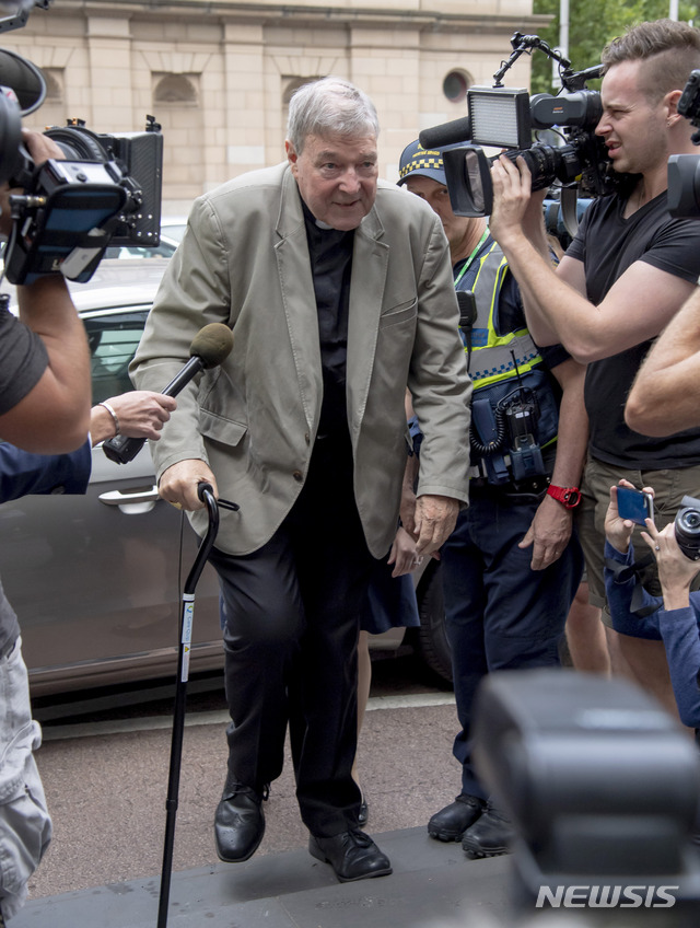 26일 호주 현지언론 시드니 모닝헤럴드, 영국 BBC, 가디언 등은 호주 멜버른 법원의 배심원단이 지난해 12월 11월 펠 추기경의 아동 성폭행 등 5개 혐의에 대해 만장일치로 유죄평결을 내렸다고 보도했다.
