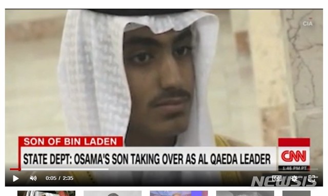 【서울=뉴시스】우은식 기자 = 오사마 빈라덴의 아들 함자 빈라덴이 최근 테러조직 알카에다의 지도자로 급부상하고 있다고 CNN이 2일(현지시간) 보도했다.