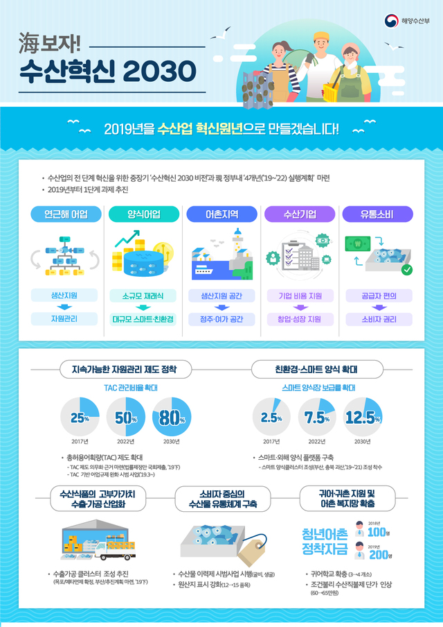 해수부는 친환경·고부가가치 스마트양식체계를 구축한다. 현재 2.5%에 불과한 스마트양식 보급률을 2030년까지 12.5%로 확대한다.