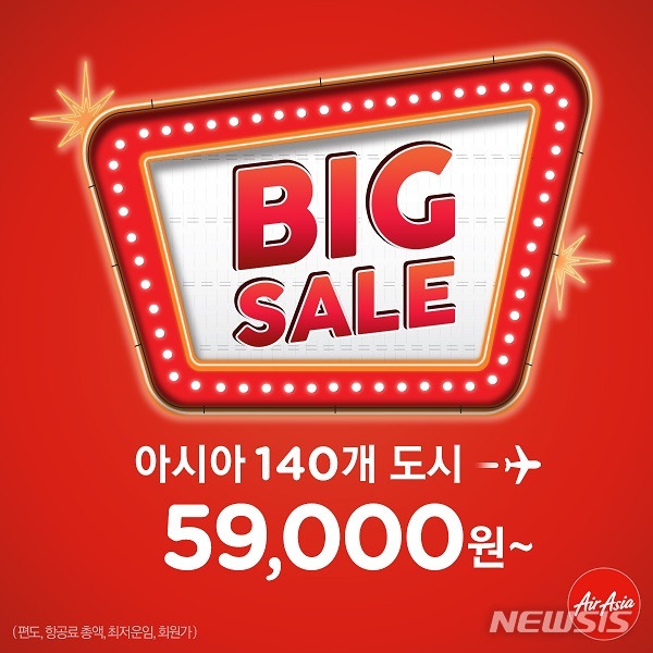 에어아시아의 빅세일은 1년 후 항공편까지 최저 운임에 구매할 수 있는 정기 얼리버드 프로모션이다. 할인이 적용되는 항공편의 좌석은 총 500만석, 탑승기간은 올해 9월1일부터 2020년 6월2일까지다.