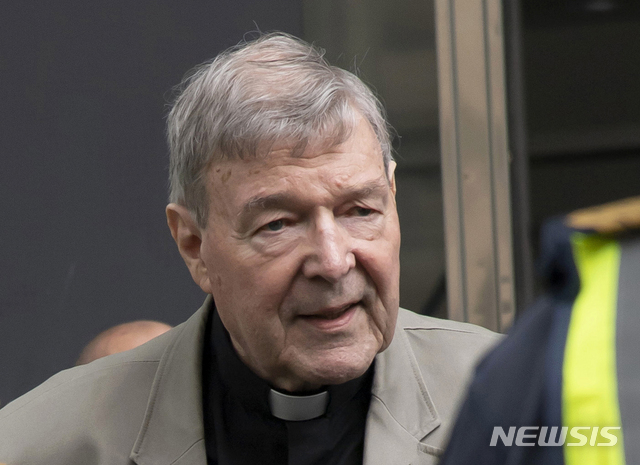 【서울=뉴시스】 오애리 기자 = 호주의 조지 펠 추기경(77)이 아동 성폭행 혐의로 결국 6년형을 선고받았다.