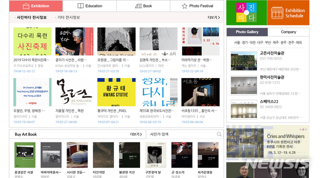국내 전시는 ‘사진바다’ 블로그와 동시에 소개한다. 사진학과가 있는 대학, 사진 아카데미, 클럽, 세미나 등 사진교육기관과 관련정보는 기본이다. 해외 교육기관에 이르기까지 교육테마 하나에도 세부 테마별 정보를 제공한다. 사진관련 단행본, 정기간행물, 작가 작품집처럼 쉽게 파악하기 어려운 도서자료에 대한 정보와 구매루트도 한 번에 볼 수 있도록 했다.