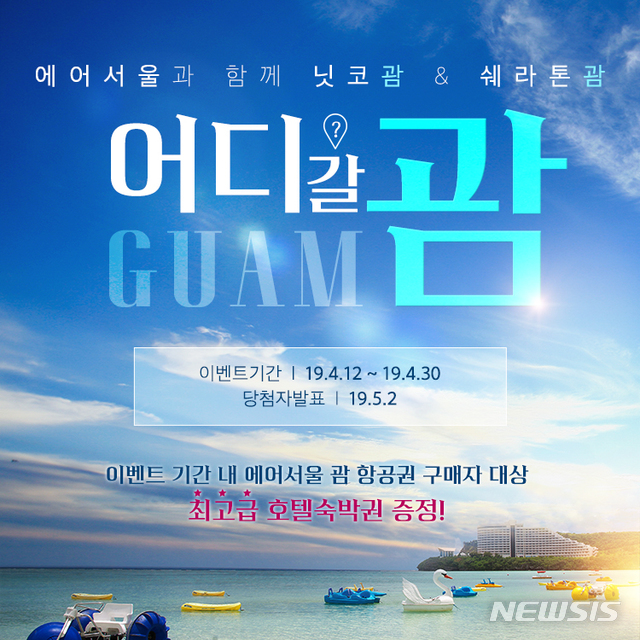 【서울=뉴시스】이종희 기자 = 에어서울이 12일 오전 10시부터 인천~괌 노선의 단독 특가와 함께 현지 최고급 호텔의 무료 숙박권 및 할인 혜택을 제공하는 이벤트를 실시한다고 밝혔다.