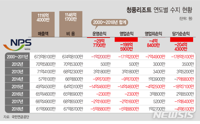 청풍리조트는 가입자와 수급권자의 복지를 위해 운영되기 때문에 적자가 나도 이를 감내할 수밖에 없었다는 게 국민연금 측 설명이다.