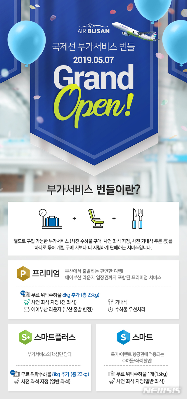 【서울=뉴시스】고은결 기자 = 에어부산은 오는 7일부터 부가 서비스 묶음 판매인 ‘번들 서비스’를 실시한다고 2일 밝혔다.