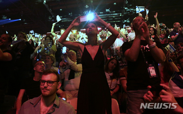 【AP/뉴시스】텔아비브의 2019년 제 64차 유로비전 가요제에서 이스라엘 대표를 응원하고 있는 관객들.