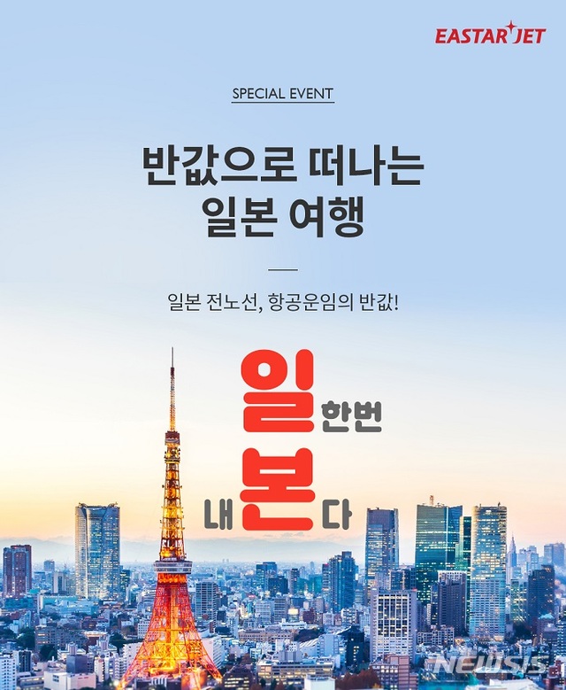 【서울=뉴시스】고은결 기자 = 이스타항공은 5월20일부터 5월24일까지 5일 간 일본 노선의 항공운임을 반값 할인하는 '일한번 내본다'를 진행한다고 밝혔다.