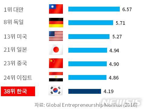 보고서에 따르면 국내 진입규제는 경쟁국들보다 매우 높다. 국제연구기관 글로벌기업가정신모니터(GEM)는 한국의 진입규제 환경을 조사대상 54개국 중 38위로 평가했다. 미국과 일본, 중국은 물론 이집트보다도 낮은 순위다.