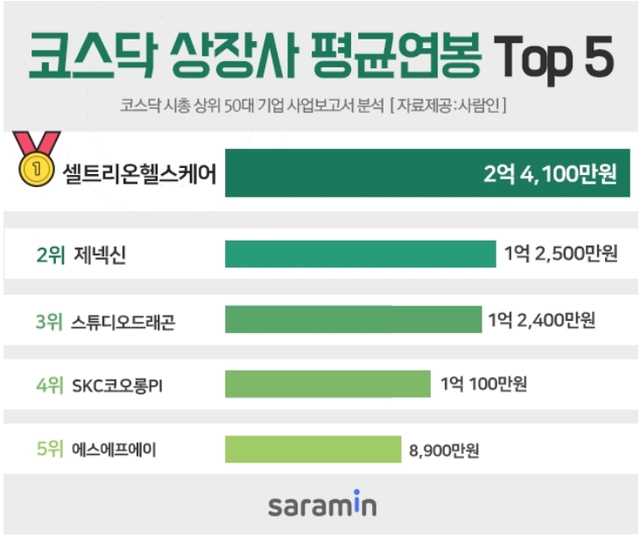 코스닥 시총 상위 50대기업 평균 연봉 6200만원