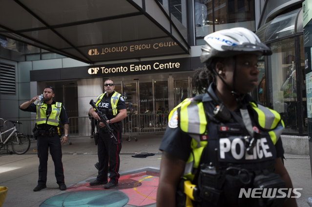 【토론토( 캐나다)= AP/뉴시스】차미례 기자 = 창단 24년 만에 처음으로 미국프로농구(NBA) 정상에 오른 토론토 랩터스팀의 환영행사가 열린 토론토 시내 광장에서 17일(현지시간) 총격 사건이 발생, 4명이 총에 맞았고 2명이 체포되었다고 현지 경찰이 발표했다.