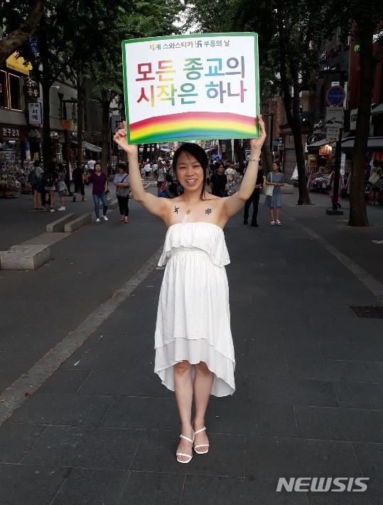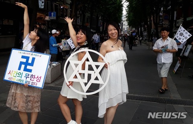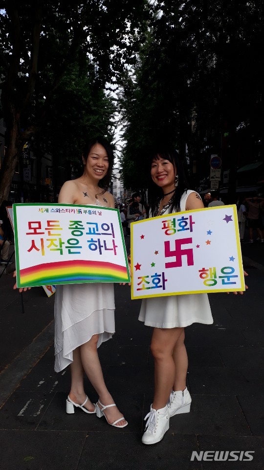 【서울=뉴시스】이재훈 기자 = 한국 라엘리안 무브먼트가 29일 서울 인사동에서 스와스티카(卍)의 본뜻을 알리는 '스와스티카 부흥의 날' 캠페인을 펼쳤다.