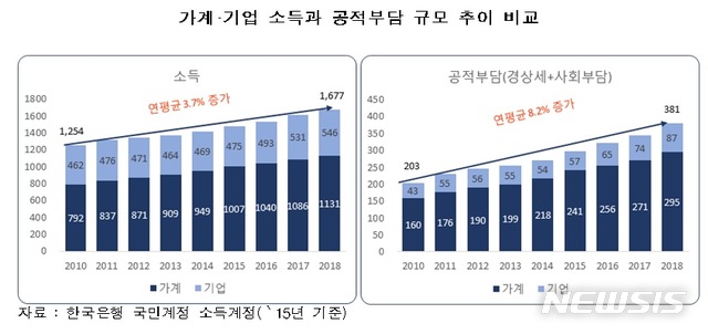 가계·기업소득은 연평균 3.7%, 공적부담은 8.2% 증가해