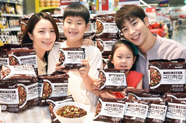 【서울=뉴시스】손정빈 기자 = 홈플러스가 22일 '삼양 국민짜장'을 내놨다. 국민짜장은 삼양 국민라면에 이어 삼양식품과 진행한 두 번째 협업 제품이다.