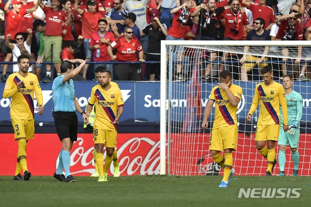 바르셀로나는 1일(한국 시간) 스페인 나바라주 팜플로나의 에스타디오 엘 사다르에서 벌어진 오사수나와의 2019~2020시즌 프리메라리가 3라운드에서 2-2로 비겼다.