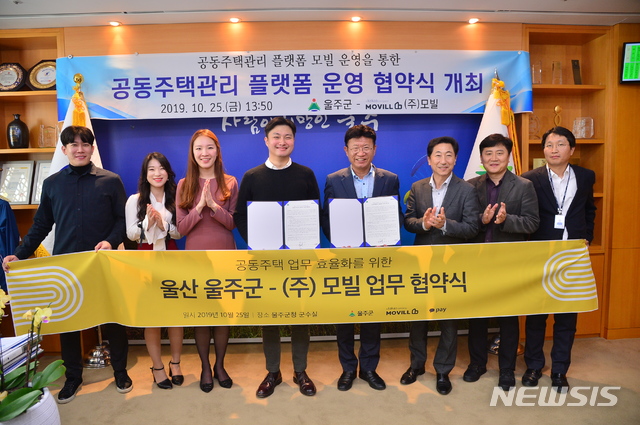 울주군은 25일 군청 소회의실에서 카카오페이 자회사 ㈜모빌과 공동주택 업무 효율화를 위한 공동주택관리 플랫폼 운영 협약을 체결했다.