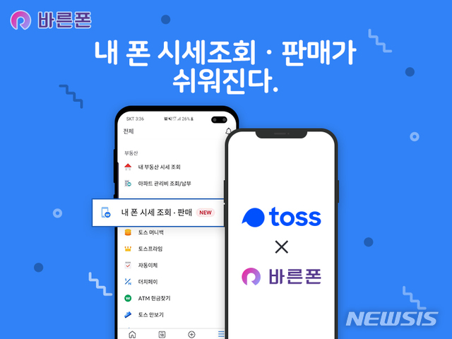 중고폰 거래 전문 플랫폼 '바른폰'을 운영하는 SK텔링크와 '토스'를 운영하는 비바리퍼블리카는 업무 제휴를 맺고, 토스 앱에서 '내 폰 시세조회·판매' 서비스를 제공한다고 28일 밝혔다.