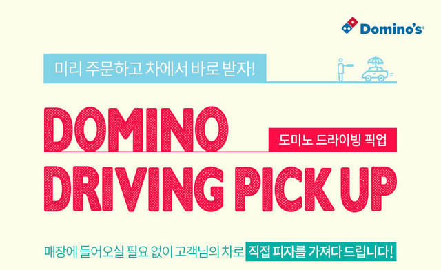 도미노피자가 지난 4월부터 운영한 '도미노 드라이빙 픽업서비스'는 매장 방문 고객 편의를 높이기 위해 차에서 내리지 않고 피자를 전달받을 수 있게 했다는 점에 높은 평가를 받았다. 해당 서비스는 온라인 방문포장 주문 시 기타요청사항란에 차량번호를 기입하고 매장 앞에 도착 후 전화하면 직원이 직접 피자를 가져다주는 서비스다. 현재 전국 249개 매장에서 서비스를 하고 있다.