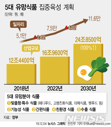 ![[세종=뉴시스]강종민 기자 = 이재욱 농림축산식품부 차관이 3일 오전 정부세종청사에서 5대 유망식품 집중 육성을 통한 '식품산업 활력 제고 대책'을 발표하고 있다. 5대 유망식품은 메디푸드와 고령친화 식품 등 맞춤형 식품, 기능성 식품, 간편 식품, 친환경 식품, 수출식품이다. 2019.12.04. ppkjm@newsis.com](https://img1.newsis.com/2019/12/03/NISI20191203_0015862947_web.jpg?rnd=20191203112226)