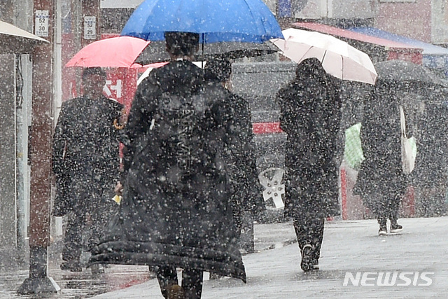 기상청은 "현재 관측소에서 (눈이 내리는 것으로) 관측되는 지역은 서울 군데군데로, 약하게 눈이 빗방울과 섞여 내리고 있는 정도"라며 "다만 대기하층에서 따뜻하고 습한 공기가 유입되면서 비로 바뀔 예정이기 때문에 눈이 쌓이거나 하진 않을 것"이라고 전했다.
