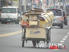 사회복지사 A씨는 "파지를 줍는 노인들이 많이 늘어 경쟁이 치열하다"며 "생활지도사들과 함께 정기적으로 독거 노인들을 방문하는 등 보살피고 있으나 경제적인 부분에서 어려움이 많다"고 했다.