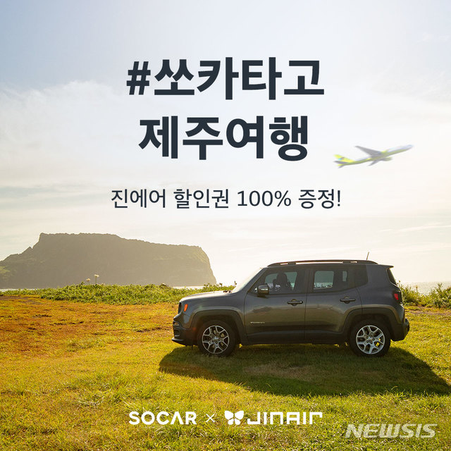 [서울=뉴시스] 박주연 기자 = 쏘카와 진에어가 신종 코로나바이러스 감염증(코로나19)로 침체된 국내 여행 수요 진작하고 제주 관광을 활성화하기 위해 이벤트를 진행한다고 30일 밝혔다.