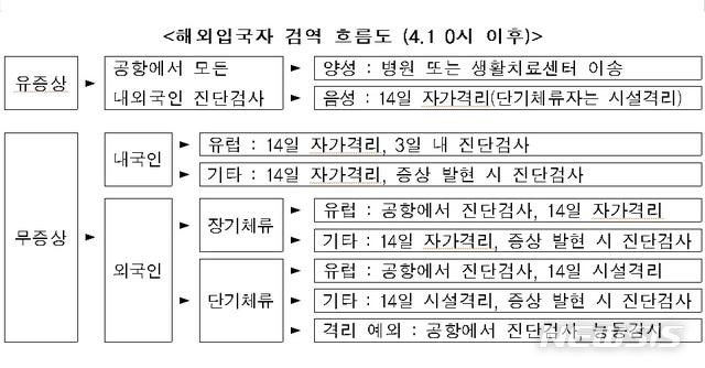 현재는 유럽 및 미국발 입국자만 격리하고 있으나, 앞으로는 모든 국가에서 입국하는 국민과 외국인은 원칙적으로 입국 후 14일간 격리한다.