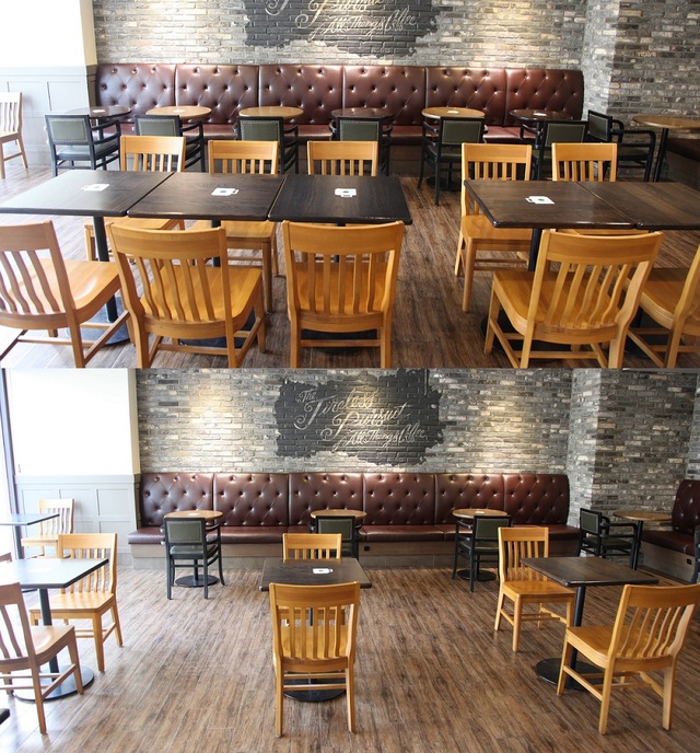 테이블 간격을 비롯해 다인용 테이블 의자 간격을 1~1.5m로 조정한다. 테이블당 좌석은 2인석 중심으로 배치한다. 안전거리 확보를 위해 계산대 앞에 안전 라인 뒤로 일정 간격의 주문 대기선을 추가 설치한다.