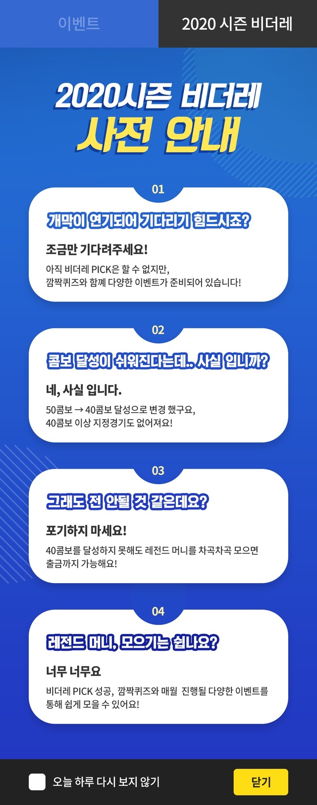 40콤보 달성을 못하더라도 꾸준히 참여하면 리워드를 받아갈 수 있는 '레전드머니'도 신설했다.