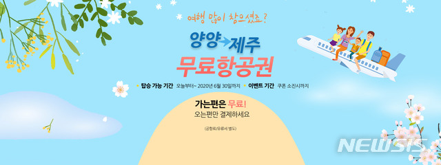 양양~제주 왕복 항공권 구매 시 편도 무료