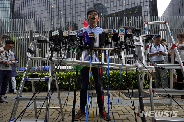 [서울=뉴시스] 문예성 기자 = 홍콩 민주화 시위의 주역인 조슈아 웡(黃之鋒) 데모시스토당 비서장이 "중국의 보안법 제정 추진은 홍콩 자치권의 관에 마지막 못을 박는 행위"라며 비난했다.