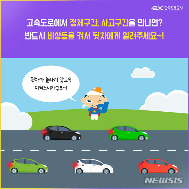 김현국 교통안전 팀장은 "갑작스러운 정체나 사고 구간에서는 비상등을 점멸해 뒤따르는 차량에 정체상황을 신속히 알려주면 사고 발생 위험을 대폭 줄일 수 있다"고 말했다.