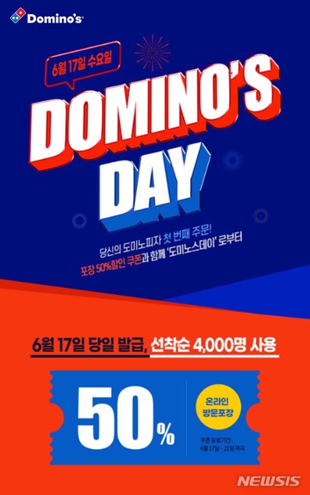할인쿠폰은 도미노스데이 당일인 17일 단 하루 제공된다. 쿠폰은 이달 21일까지 사용할 수 있다.