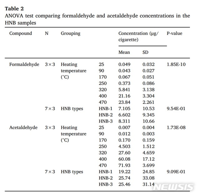 실험에서는 0도부터 전자담배를 가열하기 시작해 최대 470도까지 담배를 가열했을 때 포름알데히드와 아세트알데히드 검출량을 파악했고 이 같은 결과를 도출했다고 설명했다.