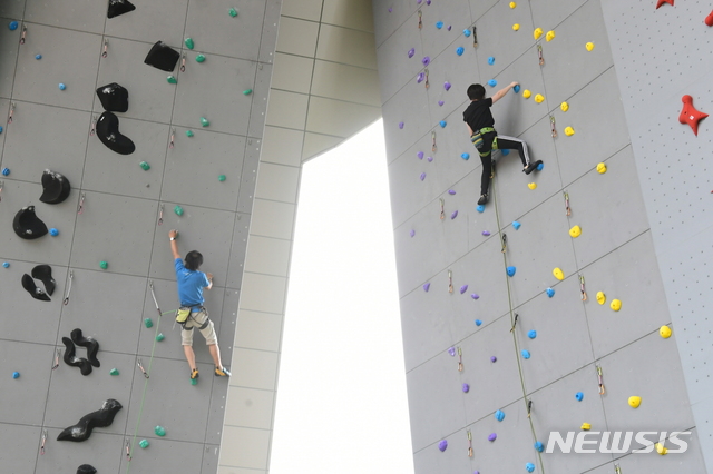 [김천=뉴시스] 박홍식 기자 = 경북 김천시는 전국 최고 높이(18m)의 인공암벽장을 조성했다고 2일 밝혔다.