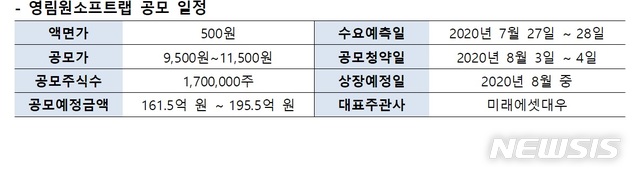 [서울=뉴시스] 이승주 기자 = ERP(전사적 자원관리) 플랫폼 개발기업인 영림원소프트랩이 6일 코스닥 시장 상장을 위한 IPO(기업공개) 일정을 본격 추진한다.