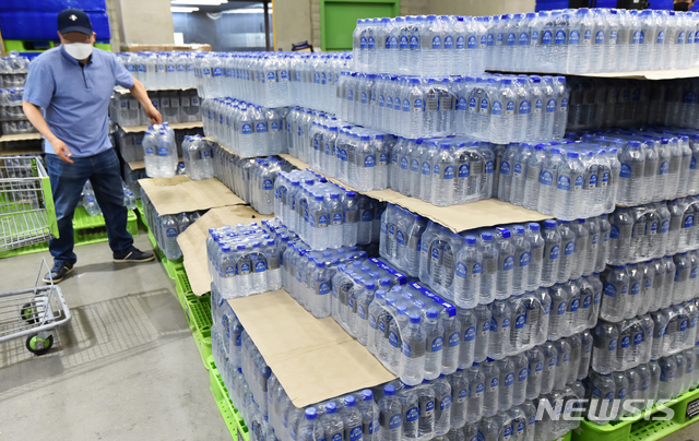 [서울=뉴시스] 손정빈 기자 = 인천 서구 가정집 수돗물에서 유충이 발견된 이후 깨끗한 물을 찾는 사람이 늘면서 생수 수요가 증가하고 있다. 그러자 유통업계는 생수 관련 할인 행사와 함께 무료 배송 서비스도 내놓고 있다.