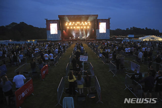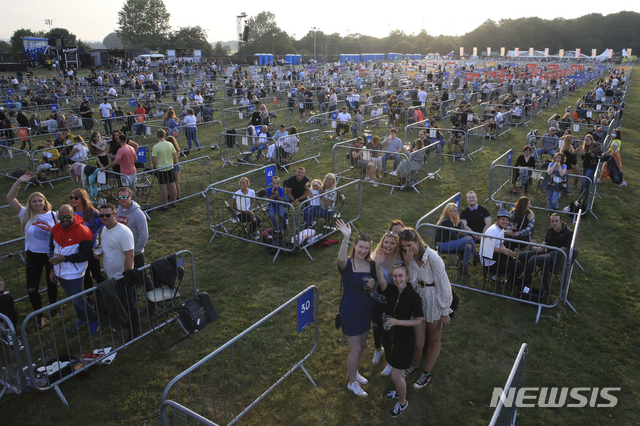 [런던=뉴시스] 이지예 기자 = 영국에서 세계 최초로 사회적 거리두기를 도입한 대형 라이브 콘서트가 열렸다. 관객 2500명은 500개의 공간에 나눠 들어가 공연을 즐겼다.