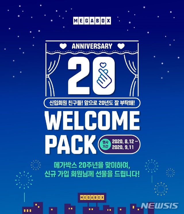 이와 함께 메가박스는 올해 20주년을 맞아 다음 달 11일까지 신규 가입 회원을 대상으로 '웰컴팩 증정 이벤트'를 실시한다.