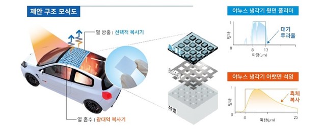 한편 이번 연구는 10cm2 면적의 야누스 냉각판을 이용한 것이나, 면적에 비례해 방출에너지가 커지는 적외선 열복사 특성상 차량 같은 큰 체적에서도 냉각효과를 보일 것으로 연구팀은 기대하고 있다.