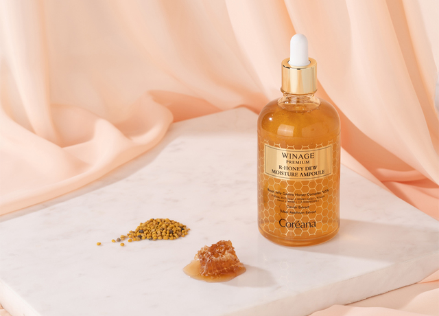 [서울=뉴시스] 최지윤 기자 = 코리아나화장품이 '위네이지 프리미엄 알-허니듀 모이스처 앰플'을 출시한다. 150㎖ 8만 원대다. 로얄젤리 감로꿀 콤플렉스를 65% 고농축 함유한다. 로얄젤리·꿀·꽃가루추출물 등 다양한 영양성분을 담는다. 캐비아와 트러플 성분이 함유된 위네이지 콤플렉스는 피부에 필요한 양질의 영양을 공급한다.