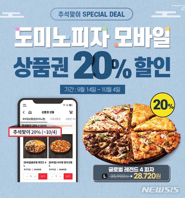 [서울=뉴시스] 김동현 기자 = 도미노피자는 추석 명절을 맞아 도미노피자 모바일 상품권인 도미노콘 할인 이벤트를 진행한다고 14일 밝혔다.