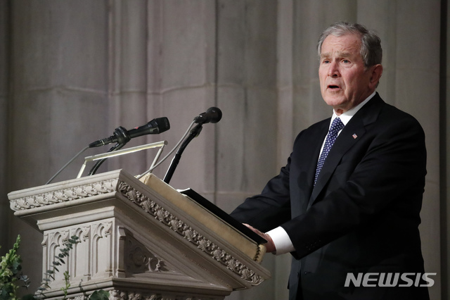 [워싱턴=AP/뉴시스]유세진 기자 = 조지 W 부시 전 미 대통령은 8일(현지시간) "미국 국민들은 이번 미국 대통령선거가 근본적으로 공정했고, 그 완전성을 지지할 것이며, 그 결과는 분명하다는 점을 확신할 수 있다"고 말했다.