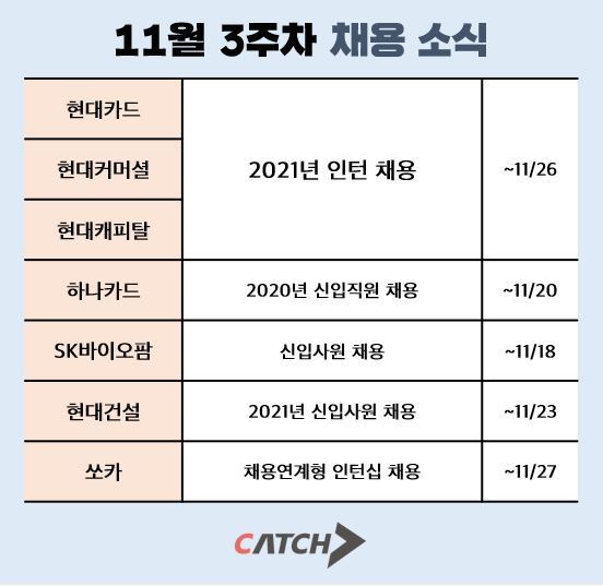 캐치, 11월 3주차 주목할 만한 채용 속보