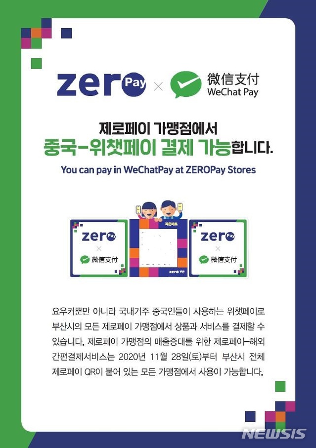 28일부터 부산지역 제로페이 가맹점에서 중국의 ‘위챗페이’ 결제가 가능해진다.