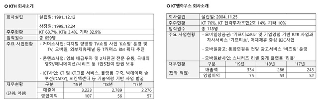 합병 후 존속법인은 KTH이며, 합병비율은 약 1대 13.3으로 KT엠하우스 주식 1주당 KTH의 신주 13.3주가 배정된다. 당국의 기업결합심사와 내년 5월경 주주총회 등을 거쳐 2021년 7월까지 합병을 마무리할 계획이다.