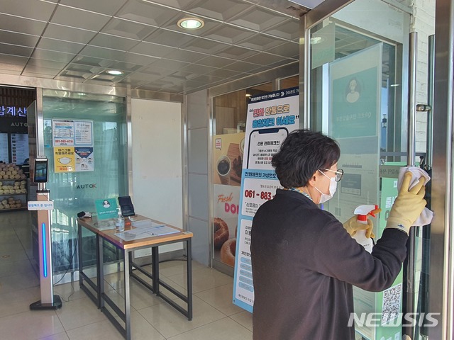 [김천=뉴시스] 박홍식 기자 = 신종 코로나바이러스 감염증(코로나19) 확진자가 급증하고 있는 가운데 한국도로공사 경부고속도로 김천(서울방향) 휴게소가 내부 방역을 최고 단계로 끌어올렸다.