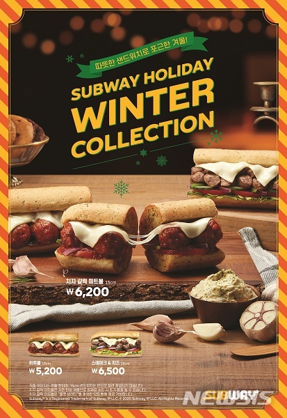 써브웨이는 '미트볼', '스테이크&치즈', '치지 갈릭 미트볼' 등 '윈터 컬렉션' 3종을 시즌 한정 메뉴로 선보였다. 미트볼은 이탈리안 스타일 비프 미트볼과 풍부한 토마토 향이 살아있는 써브웨이 특제 마리나라 소스가 조화를 이룬다. 치지 갈릭 미트볼은 은은한 마늘 향미가 느껴지는 갈릭 버터 스프레드를 발라 구운 써브웨이 빵에 특제 마리나라 소스에 버무린 미트볼, 진한 치즈의 풍미가 어우러져 한층 깊이 있는 미트볼 샌드위치를 즐길 수 있다.