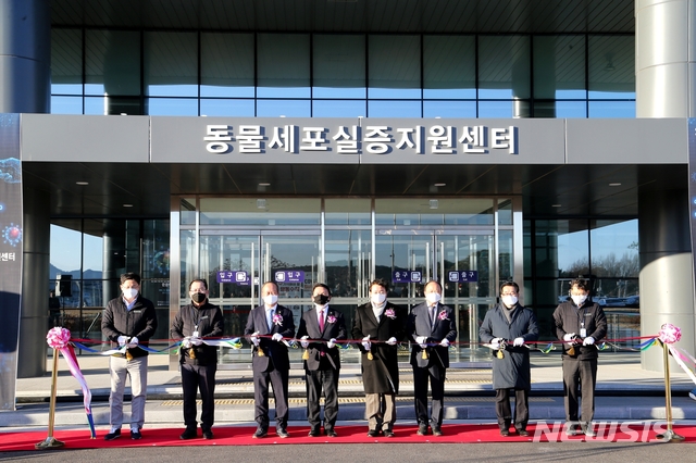 [안동=뉴시스] 김진호 기자 = 경북 안동시에서 동물세포실증지원센터가 착공 4년 만에 준공됐다.산업통상자원부 주최로 28일 준공식을 열었다.