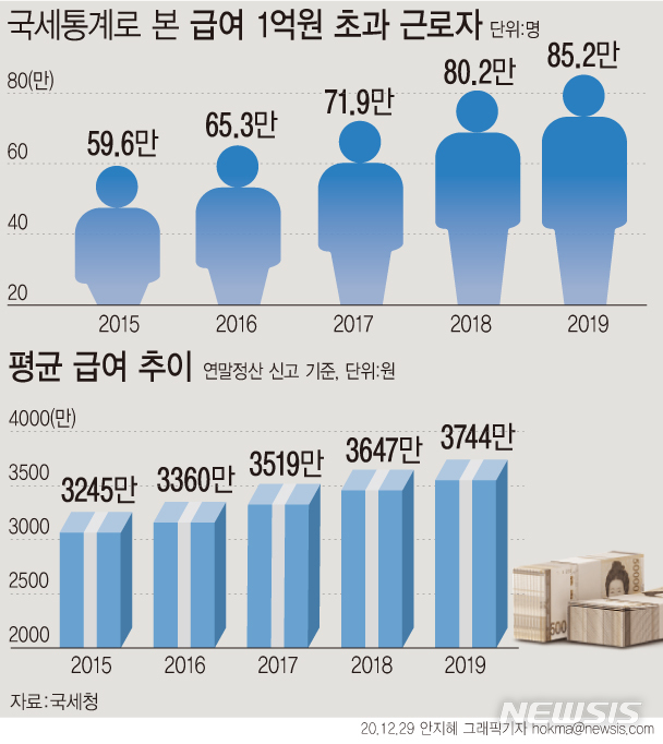 85만명은 연봉 '1억' 초과…6.2% 증가