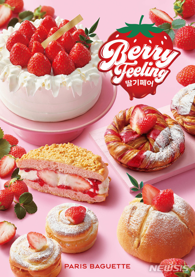 파리바게뜨는 산청딸기 케이크, 시그니처 생딸기 듬뿍 생크림 케이크 등을 앞세워 '2021 딸기 페어'를 진행한다.▲딸기 빅볼 ▲생딸기 맘모스 ▲딸기 밀키롤 ▲딸기 크림빵 ▲생딸기 요거트 샌드 등상큼한 딸기와 달콤하고 부드러운 크림의 조화가 일품인 베이커리도 출시한다.